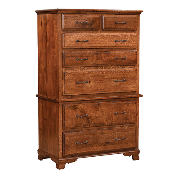 This Country Economy Bedroom Collection is Classic American Country. Drawers are English Dovetailed front and back and we use solid hardwood drawer boxes. Drawer suspension is Side Mount Full Extension ball bearing slides. Custom sizes and details are always avail options as well as matching beds in all sizes with and without under drawers. We have it shown here in an OCS113 Michele?s finished Solid Plain Cut American Cherry . We have hundreds of finishes and many wood species to choose from. Call Toll Free: 888-302-2276