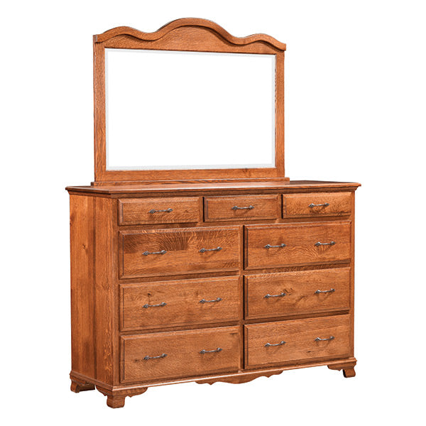 Amish Crafted Solid Wood FurnitureThis Economy Old Colonial Collection (worst name possible) is Classic Amish American Made in the Colonial period design with Bracketed leg base details. High End Amish made with Drawers that are English Dovetailed front and back and we use solid hardwood drawer boxes. Drawer suspension is Side Mount Full Extension ball bearing slides. Custom sizes and details are always available options as well as matching beds in all sizes with and without under drawers. We have it shown here in an light finished Solid Brown Maple. We have a variety of finishes and many wood species to choose from.