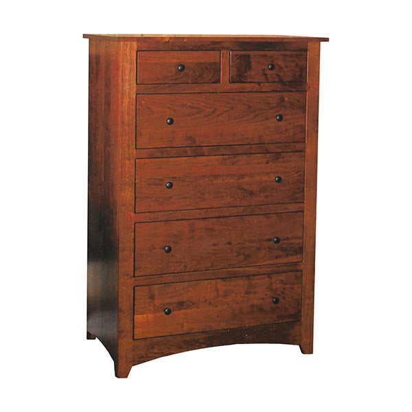 Amish Custom Hand Made Economy Shaker Large Chest has all the Quality Details of all our Amish Built products. Dovetail Drawers, Full Extension Ball Bearing Drawers, all Solid Panels and Customizable to size, Color and Wood species. Items are shown in Solid American Character Cherry.