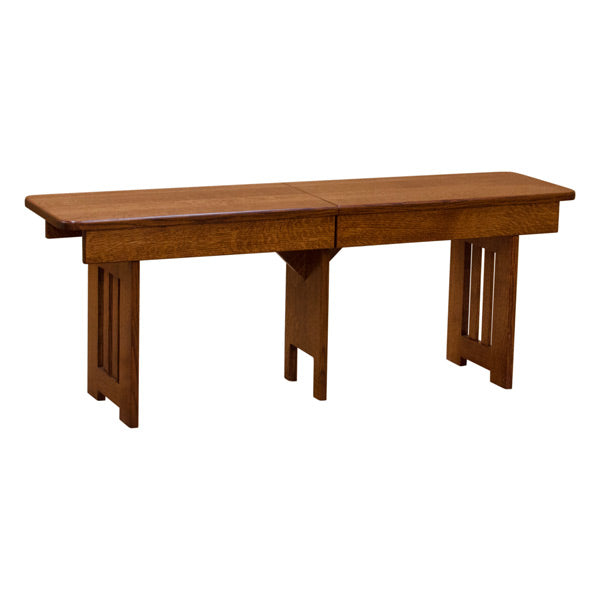 Each leaf is 12? and it extends from 48? W to 96? W with all the leaves intact. It?s not necessary to put all the leaves. This is a strongly built bench made out of Solid Quartersawn White Oak. Note that this bench can be made longer but the depth might change depending on how long the bench would be.