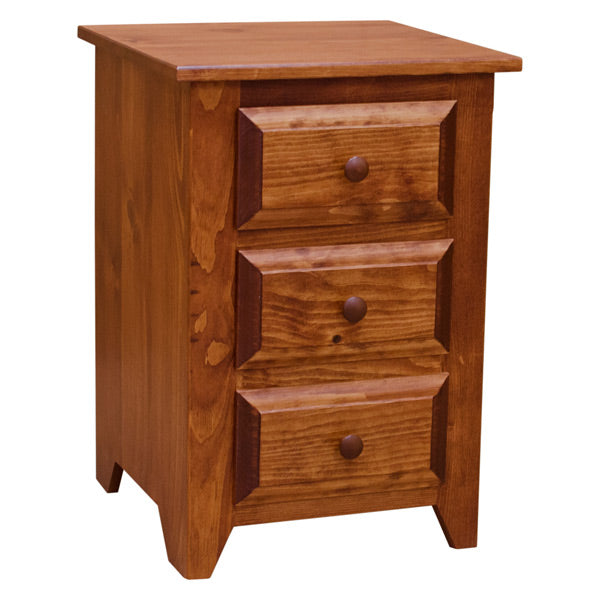 This Folks three drawer nightstand is beautifully handmade in the heartland of America. This furniture is made out of hand selected wood pines to pull off this simple and yet elegant look. With its fine craftsmanship, you will definitely admire this chic three drawer nightstand.