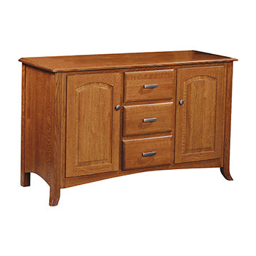 Our Galveston Buffet can be expanded to any size, wood or finish. We craft our Amish Hand Made furniture with care and respect for the Craftsman's Art. Wood Choices are Solid Maple, Quarter Sawn white Oak, Gray Elm, Black Walnut and Plain Cut Oak. Picture here is Solid Maple.