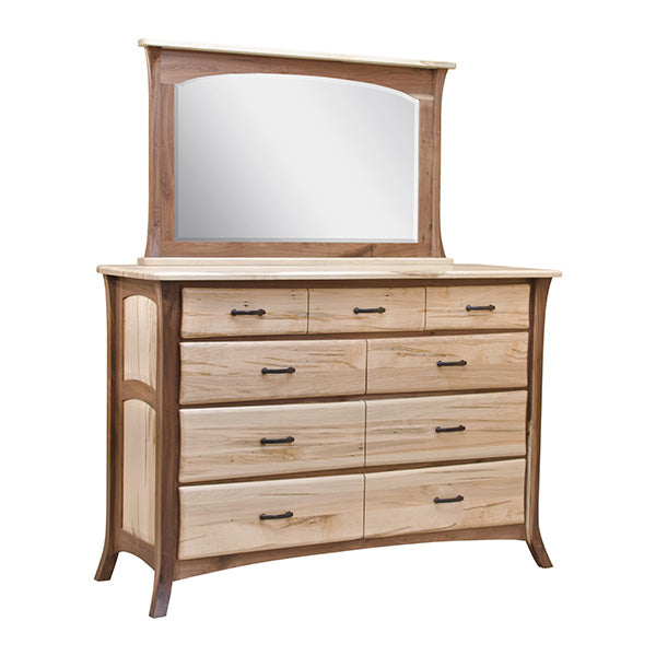 The soft graceful line of our new Galveston Bedroom are unique with gently curving legs and side details. The Natural Walnut with contrasting Wormy Maple is striking in it uniqueness. It can be customized as needed and custom pieces in any category including Dining room and entertainment centers are available. See the Galveston Dining table in additional images also available