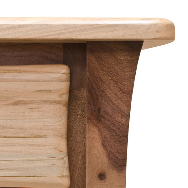 The soft graceful line of our new Galveston Bedroom are unique with gently curving legs and side details. The Natural Walnut with contrasting Wormy Maple is striking in it uniqueness. It can be customized as needed and custom pieces in any category including Dining room and entertainment centers are available. See the Galveston Dining table in additional images also available