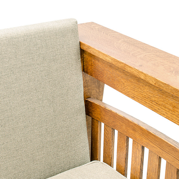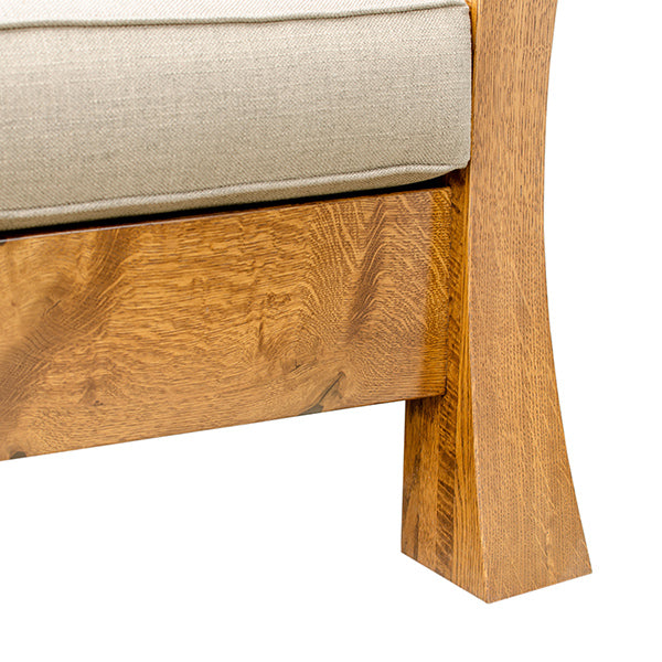 Our Gateway Living Room set is available in Sofa, Loveseat and Chair. We have designed this group with an eye to Frank Lloyd Wrights Prairie Style with wide arms. We have added Robust, Bold and Flowing Posts. The Gateway flat spindles flow under a Gateway arched detail offering negative spacing below the Prairie Flat Arm. All woods, colors, fabrics and leathers are available.