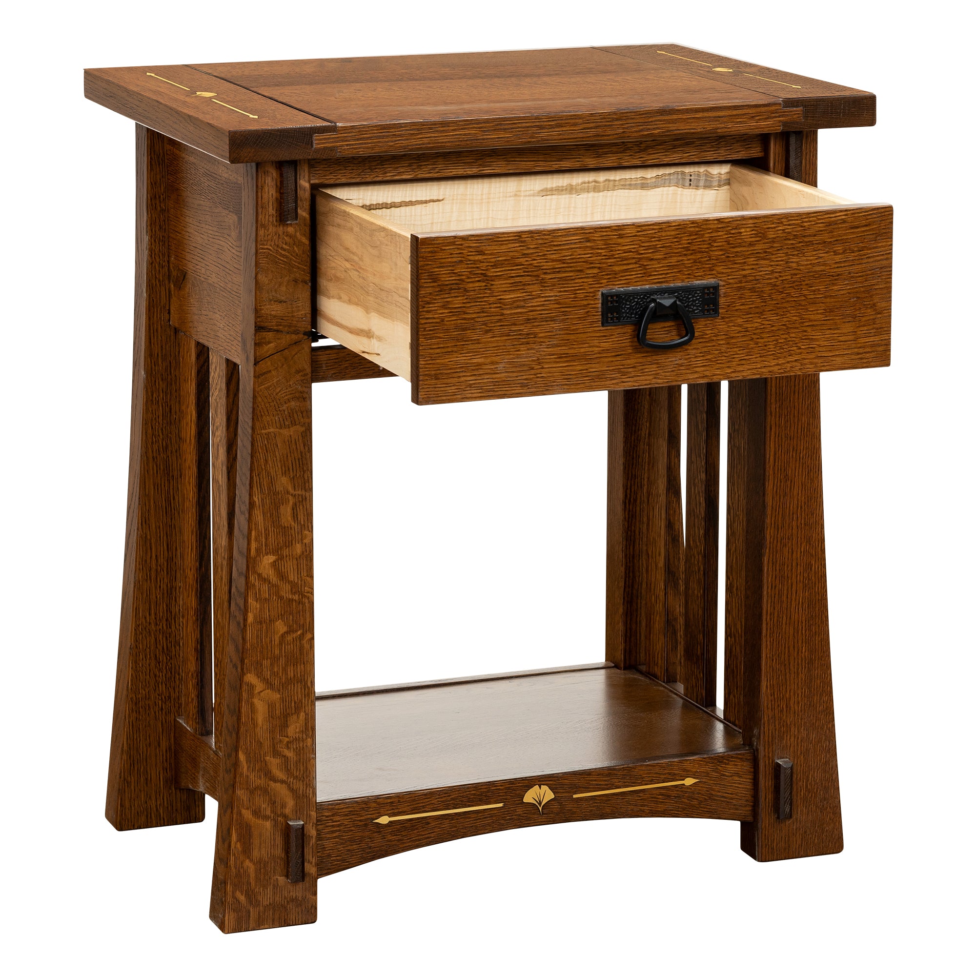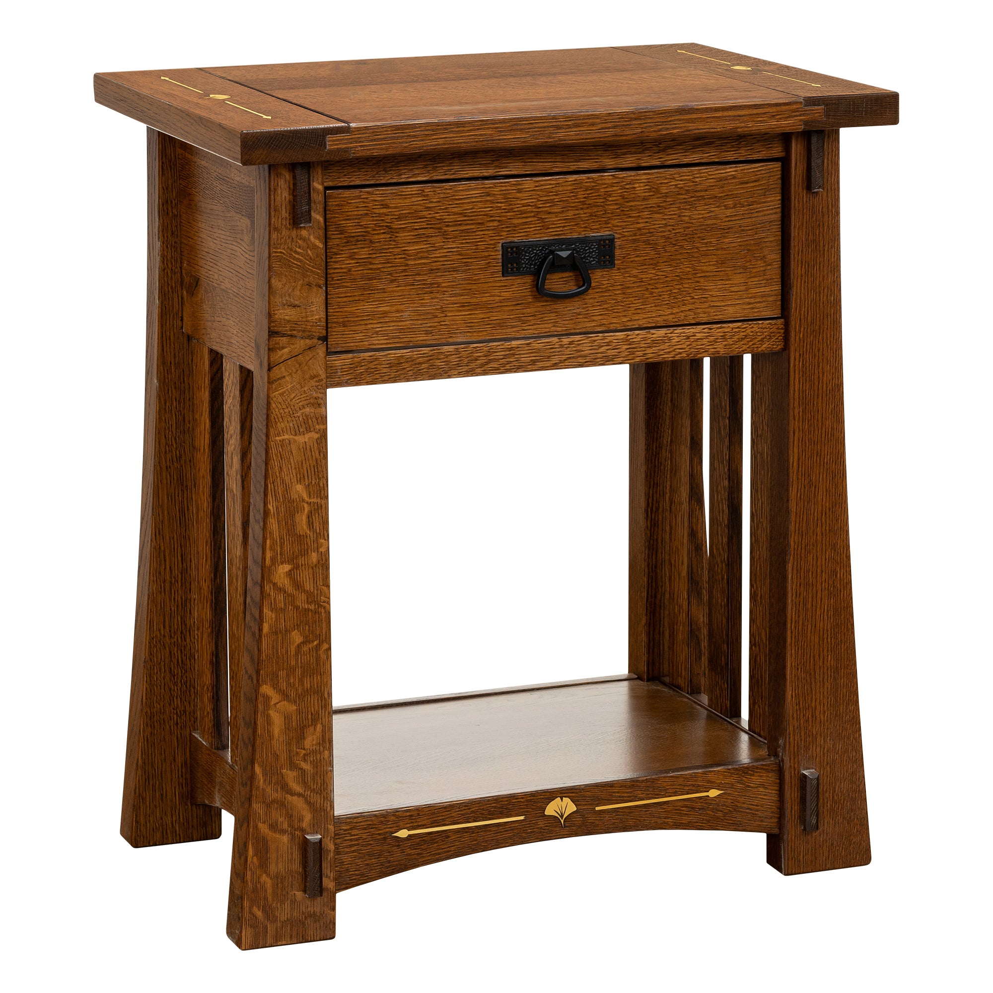 This Golden Gecko one-drawer Nightstand with is exceptionally unique not only because of its genuine antique design, but because it is made from the hardest of all North American Hardwood. In addition, this Nightstand is skillfully constructed by highly experienced Amish Craftsmen using solid Hickory (shown). Furthermore, the legs on this Hickory Nightstand and the pull handle are constructed from the suckers of Hickory trees-a material that is harvested in a limited fashion in certain seasons.