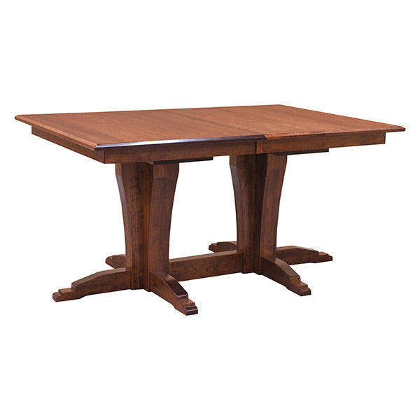 This exquisite Vintage Dining table is a beauty to behold. Artistic detailed double pedestal base and a beveled edge rectangular top adds to its magnificent look. This table also expands 48? inches more with four leaves with the total of 108? inches. The leaves are self store in the middle. With all the leaves inserted, you can entertain ten people in this beautiful table very comfortably without any worry of limited space.