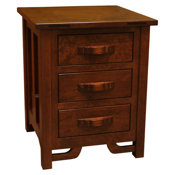 Every surface of this nightstand is gently smoothed and rounded to the touch without sharp corners or edges. This nightstand features a sealed conversion varnish that protects this piece from water, oil, alcohol and even nail polish. In addition, the drawers have English dovetail, and they sit on full-extension ball bearings that kindly and easily glide open and shut. These features give this nightstand not only a distinguished look but an elegant and prestigious feel as well. Furthermore, this stylish Amish Greene & Greene Pasadena Three-Drawer Nightstand is built to the highest standards and with the strictest attention to detail making it last you for generations.
