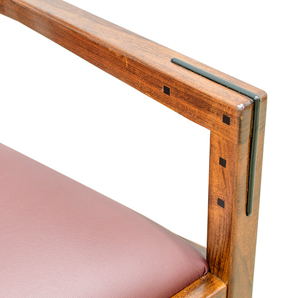 This unique Mission or Arts and Crafts Dining Chair is a hallmark of the Greene and Greene contributions to the Arts and Crafts movement.Every surface is smoothed and rounded, gentle to the touch and without sharp corners or edges. Note the gracefully curved and supportive back, and the seats are Genuine Leather with the look and feel of a favorite pair of shoes. Obviously each chair is the work of a single artisan working with hand tools and patience. Truly a work of art, this chair would be appropriate for a Mission or Craftsman motif room and would look wonderful in a Bungalow style or Prairie home.