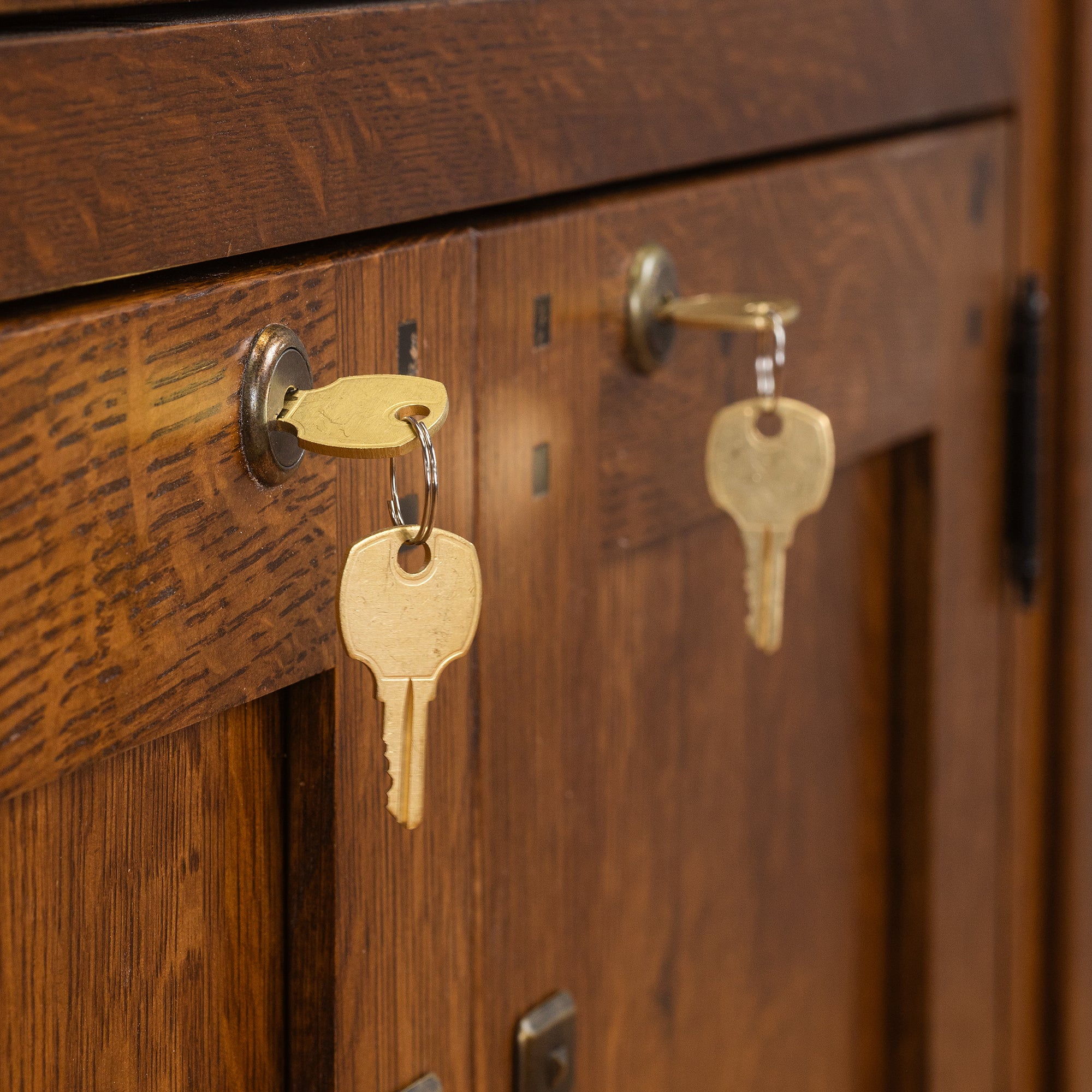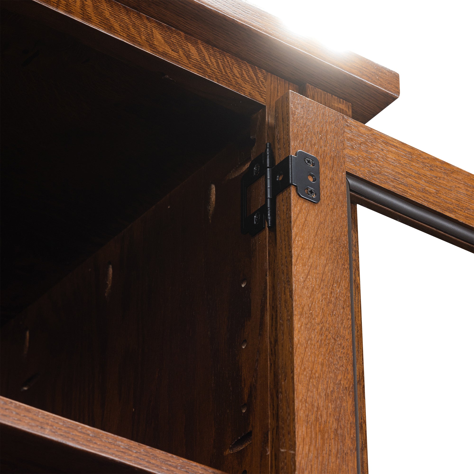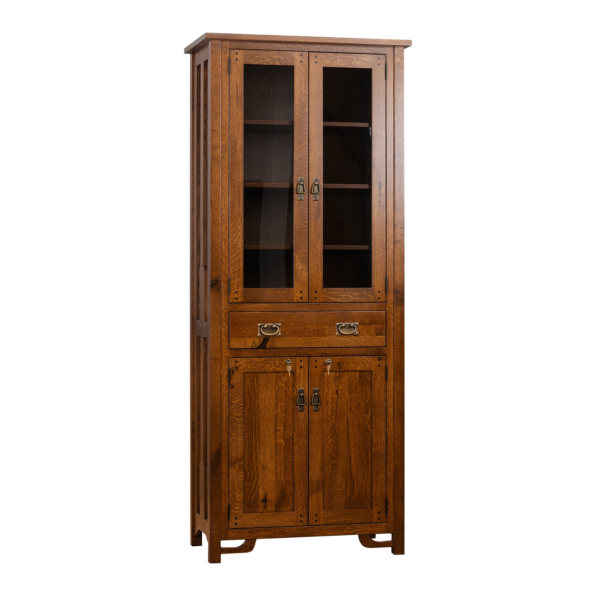 Note the heft and grace of the hutch and the truly detailed glass work. Truly a work of art, this China Hutch would be appropriate for a Mission or Craftsman motif room and would look wonderful in a Bungalow style or Prairie home.