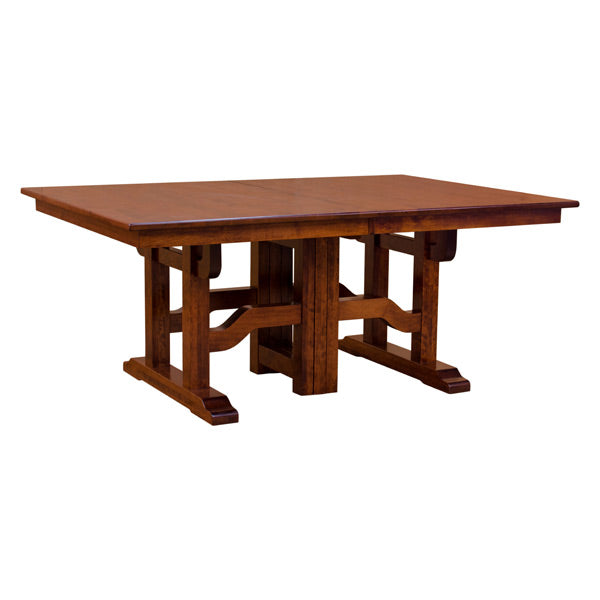 This beautiful 72" Amish Greene & Greene Pasadena Dining Table w/12-Leaves is handmade skillfully by highly experienced Amish Craftsmen. Built out of individually hewn solid Pennsylvania Cherry Wood planks with beautifully placed ebony insets. This archetypal and timeless dining table is a hallmark to the contributions of the Arts & Crafts movement. You can take pride in owning furniture built to the highest standards and with strictest attention to detail. The detailed woodwork of this classic piece is of that seen in the Gamble House of Pasadena, California. In addition, this table is remarkably unique not only because of its indisputable antique design but because it is made from the hardest of all North American Hardwood.