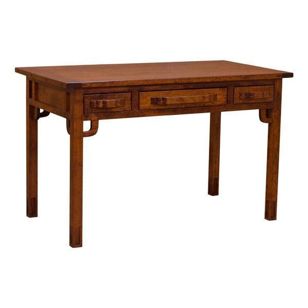 The 48" Greene & Greene Writing Desk is an elegant piece designed with the characteristics made popular by architects Greene and Greene. This desk features smooth, rounded surfaces and exquisite details.This elegant piece is constructed with solid Cherry with cloud lift details and black square insets.