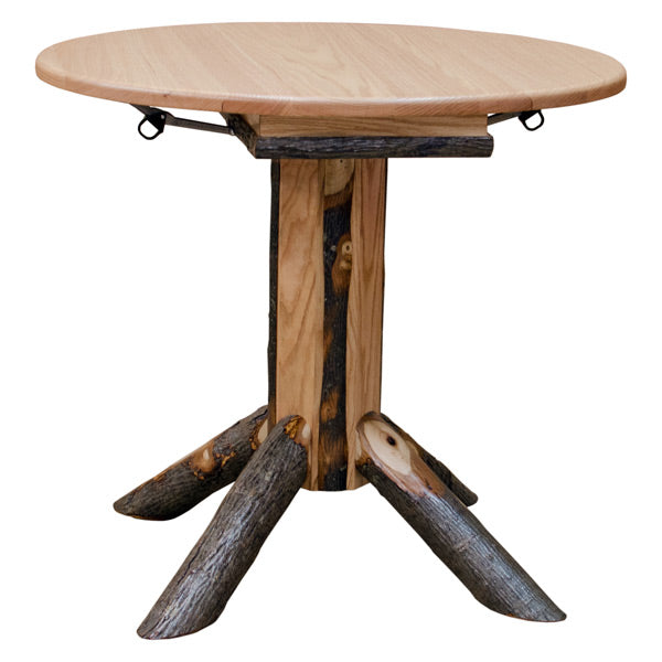 This 34" Red Oak/Hickory Drop leaf Table is skillfully constructed by highly experienced Amish Craftsmen. This Red Oak/Hickory Table is exceptional not only because of its genuine antique design; it is proudly made in the US with no veneer or particle board. The aesthetic grain pattern of the Hickory wood makes it a popular choice for something unique and still provides sturdy built furniture.