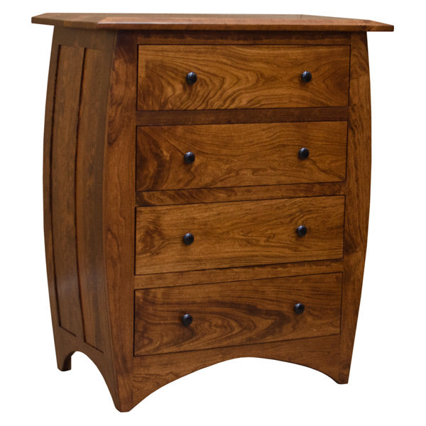 The spacious four drawers will accommodate all of your clothing storage space. And the width of this chest is a standard size that is easy to find a space in your bedroom. Another great feature of this unit is that the drawers are made with traditional English dovetail joints and sits on a full-extension under-mount soft-close glides. It is handcrafted by highly skilled Amish craftsmen. This beautiful piece is a must have that contains the highest standards of quality in furniture craftsmanship.