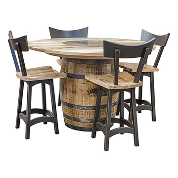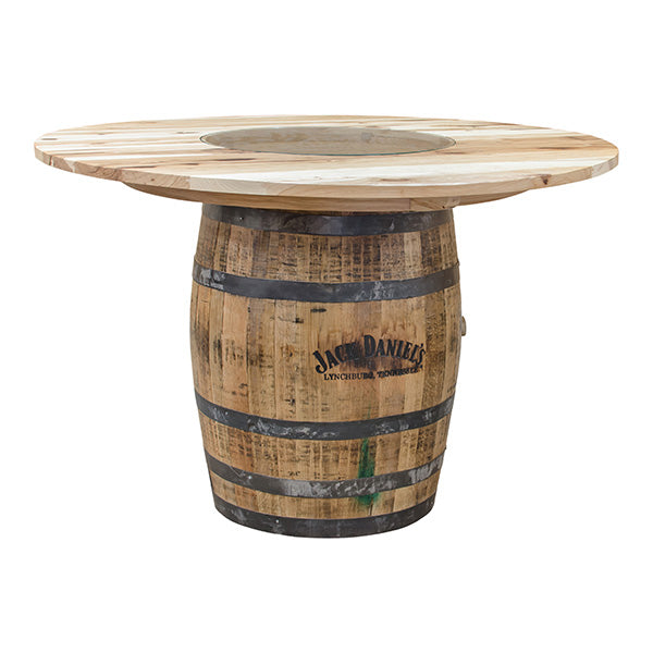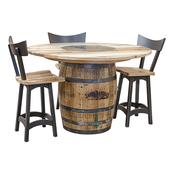 This unique Pub table has a glass inset above Jack Daniels logo on top. The hickory top has a natural finish to accentuate the beautiful grain of the wood. The base is an actual repurposed Jack Daniels Barrel made of Solid White Oak. This unit is also available without logo if requested. This uncommon pub table can also be used as a fine community table.