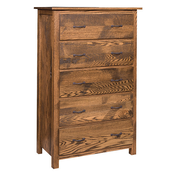 This Lawrence Bedroom Collection is Classic Amish American Made in a Rustic Contemporary Design. Drawers are English Dovetailed front and back and we use solid hardwood drawer boxes and cases throughout. Drawer suspension is Side Mount Full Extension ball bearing slides. Custom sizes and details are always available options as well as matching beds in all sizes with and without under drawers. We have it shown here in an OCS105 Black Walnut Finish and Solid Plain Cut Oak. We have a variety of finishes and many wood species to choose from. Toll Free: 888-302-2276