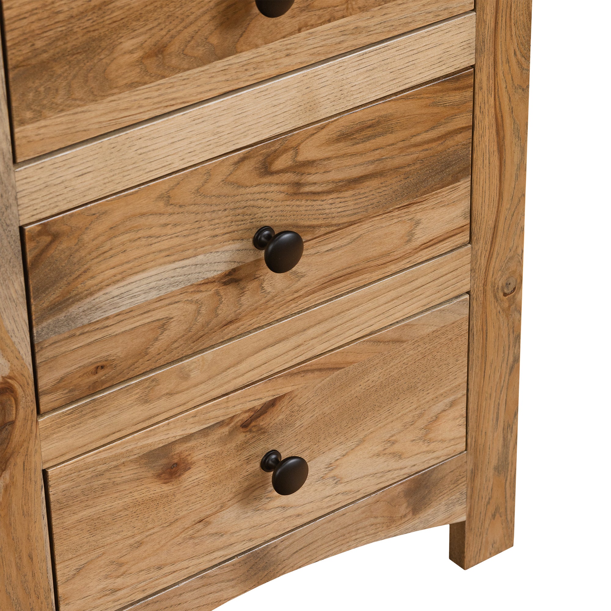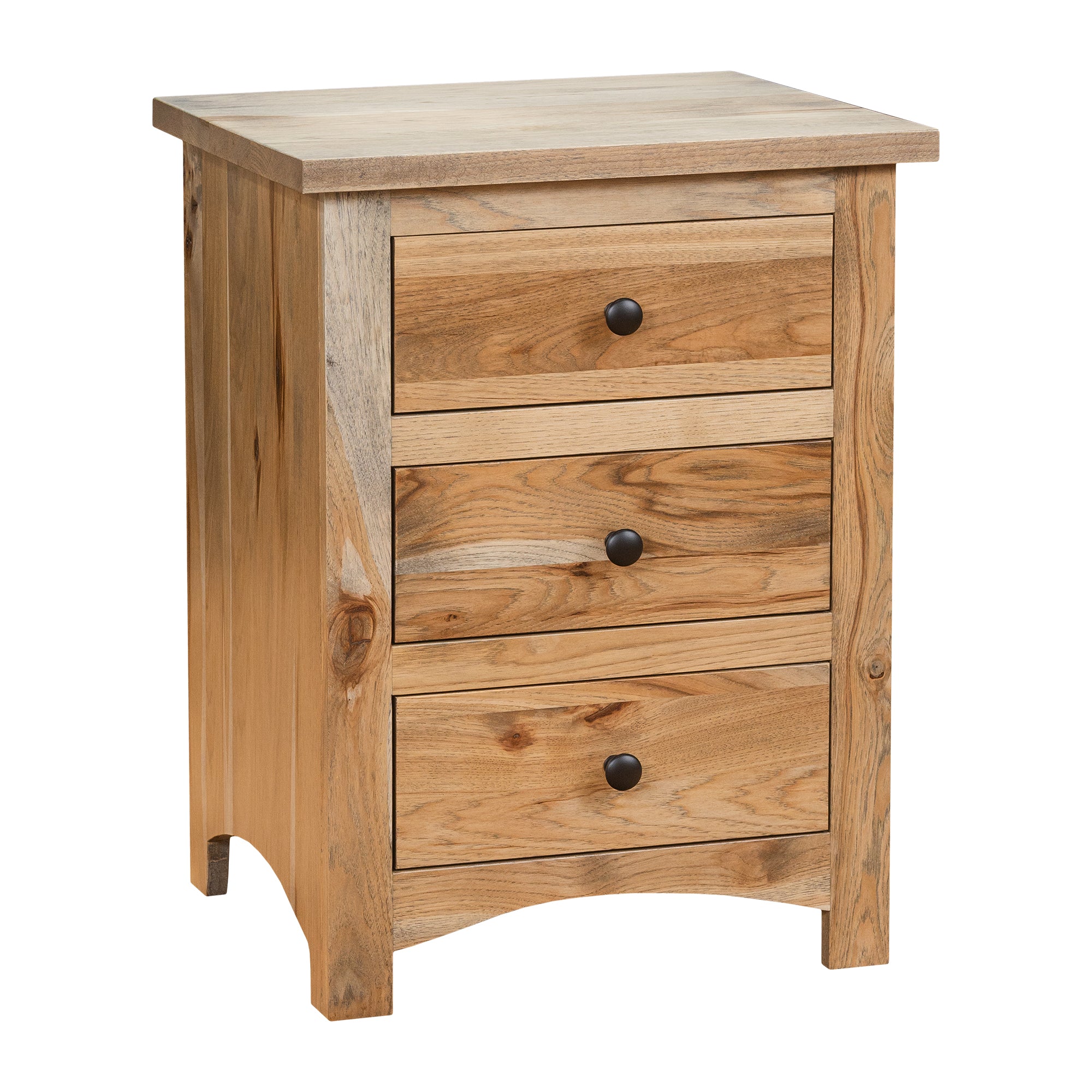 This simple three drawer night stand is a US made product that display durability and made from quality materials at an affordable price. It?s constructed in solid Character Quartersawn White Oak. What is Character Wood? It is cut from the outside layer of the log closest to the bark. As a result, it will show varying knots and different grain patterns.