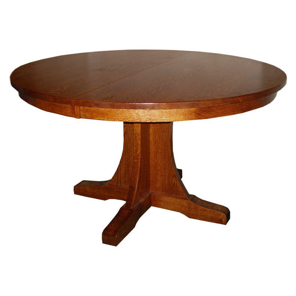 The Amish 54? Round Mission Ridge table is accommodating for small and large gatherings. The two 12? leaves allow for this table to accommodate your guests on special occasions where more seating room is necessary. This table remains true to the Mission style in its design and construction. The simplicity and quality of this table is unrivaled with solid quarter sawn White Oak construction. The unique quarter sawn grain is highly visible as each piece of White Oak lumber is hand selected by master Amish craftsmen. The functionality and overall beauty of this table will charm all your guests!