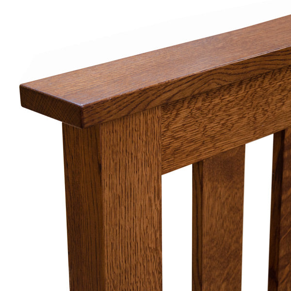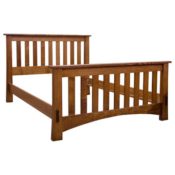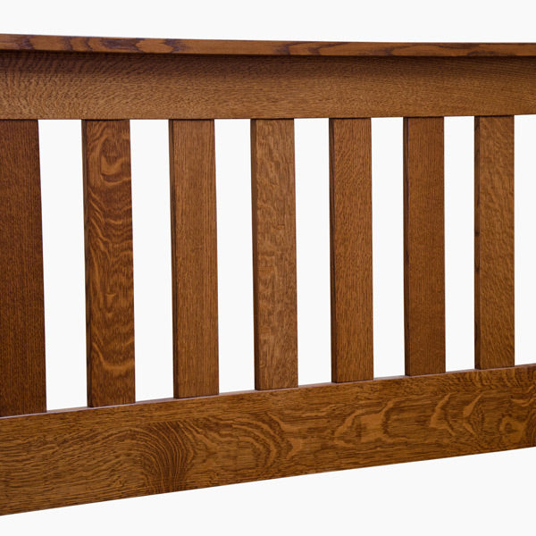 This Amish Mission Queen Rail Bed is constructed by highly experienced Amish Craftsmen. It is reminiscent of the Arts & Crafts movement. Made out of Quartersawn white oak and finish in a warm cherry finish. The bed rails are a full 1-inch thick and 6 inches wide and attach with extra- heavy-duty bolt-in hardware. It is also includes four wooden slats and two support legs for maximum support.