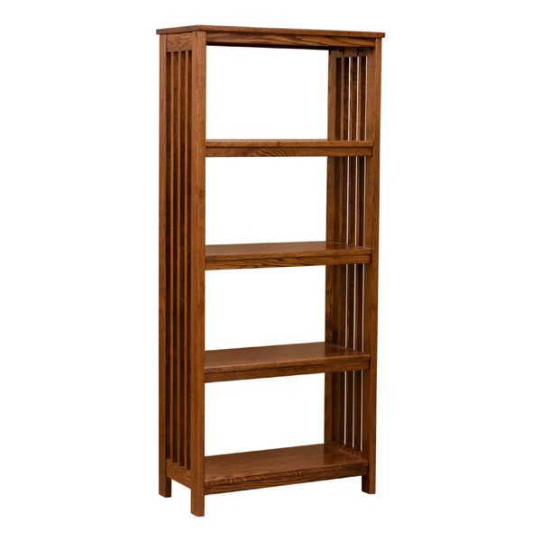 This is a new item that we finally added in our ever expanding bookcases. It is made out of solid Red Oak wood by highly skilled craftsman. No particle board or veneer used in this unit. The shelves are all stationary.