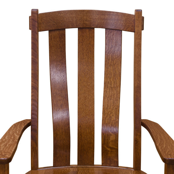 This Monarch Arm Chair shows openness and fluidity in its design. Although it is visually light, this chair is sturdily built and can have an upholstered seat as an option. Notice the curved back of this sturdy chair. It is crafted to accommodate the natural curve of the spine, therefore providing excellent comfort.