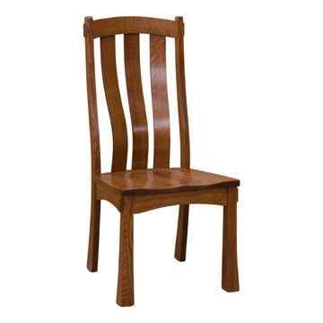 This Monarch Side Chair is eloquently crafted by experience craftsman. It is visually light and still offers durability and high quality. Notice the curved back of this elegant chair. It is crafted to accommodate the natural curve of the spine, therefore providing excellent comfort. This is available in woods and stain. And lastly, upholstered seat is also an option for this lovely chair.