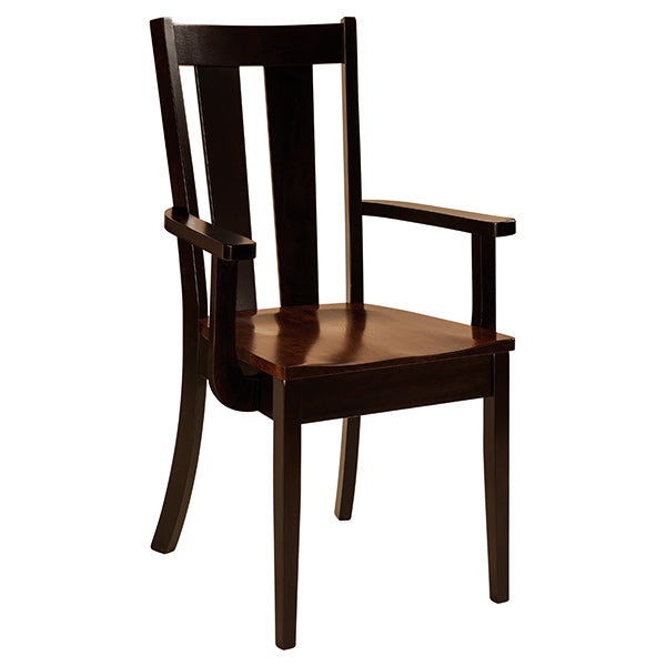 This American Made Contemporary/Transitional Newberry Armchair is a classic. This wood seat or upholstered Vertical Slat back chair has the simplest of lines and simple details. This series is built to contract specification which means extremely sturdy restaurant quality. Available in Side chair, armchair and bar stools in all heights swivel and non swivel. Note the pull down for wood choices including Red Oak, Quarter sawn White Oak, Maple and American black Walnut. Additionally, choose your color of finish. We offer almost unlimited choices of wood, color or upholstery