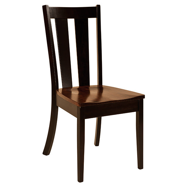 This American Made Contemporary/Transitional Newberry Side chair is a classic. This wood seat or upholstered Vertical Slat back chair has the simplest of lines and simple details. This series is built to contract specification which means extremely sturdy restaurant quality. Available in Side chair, armchair and bar stools in all heights swivel and non swivel. Note the pull down for wood choices including Red Oak, Quarter sawn White Oak, Maple and American black Walnut. Additionally, choose your color of finish. We offer almost unlimited choices of wood, color or upholstery