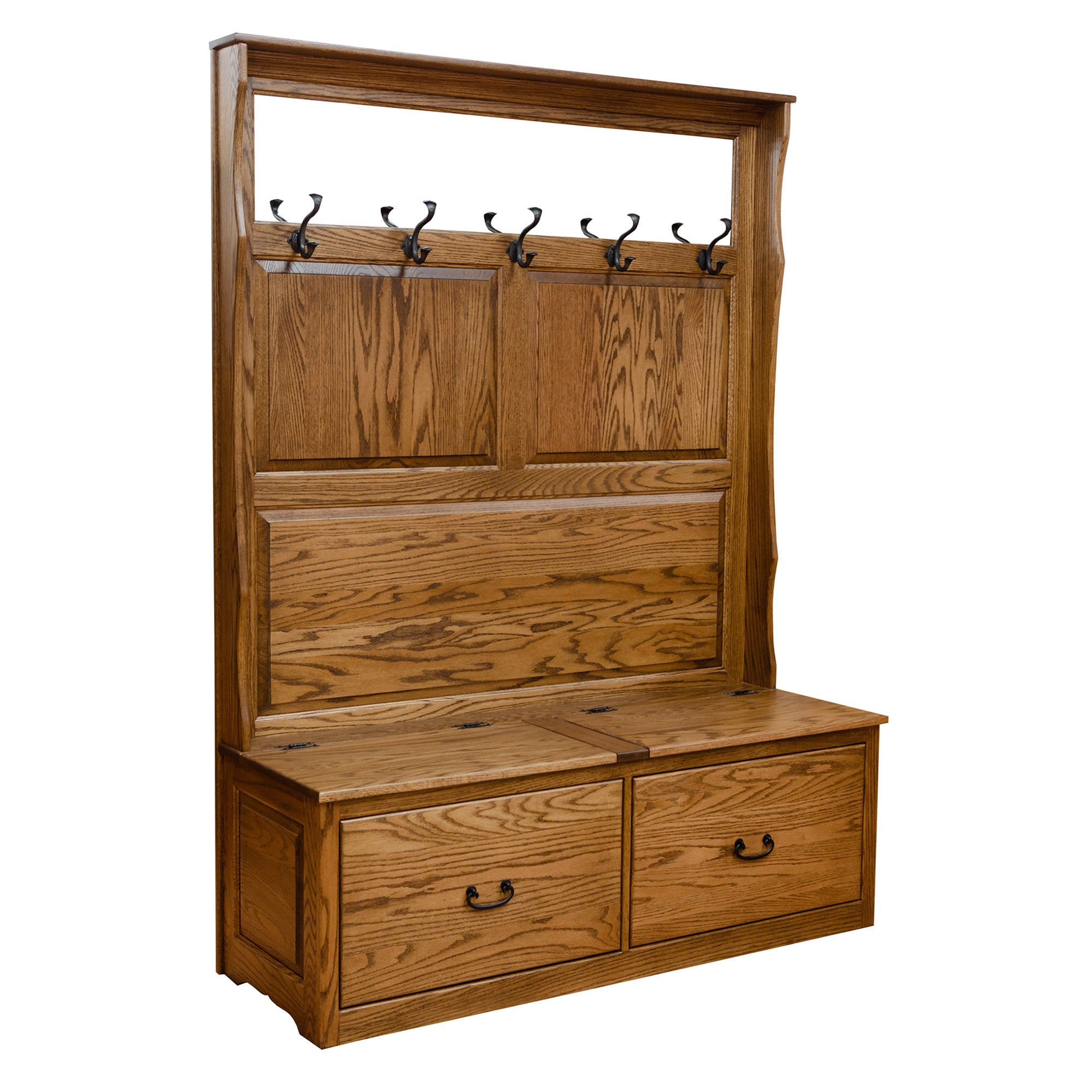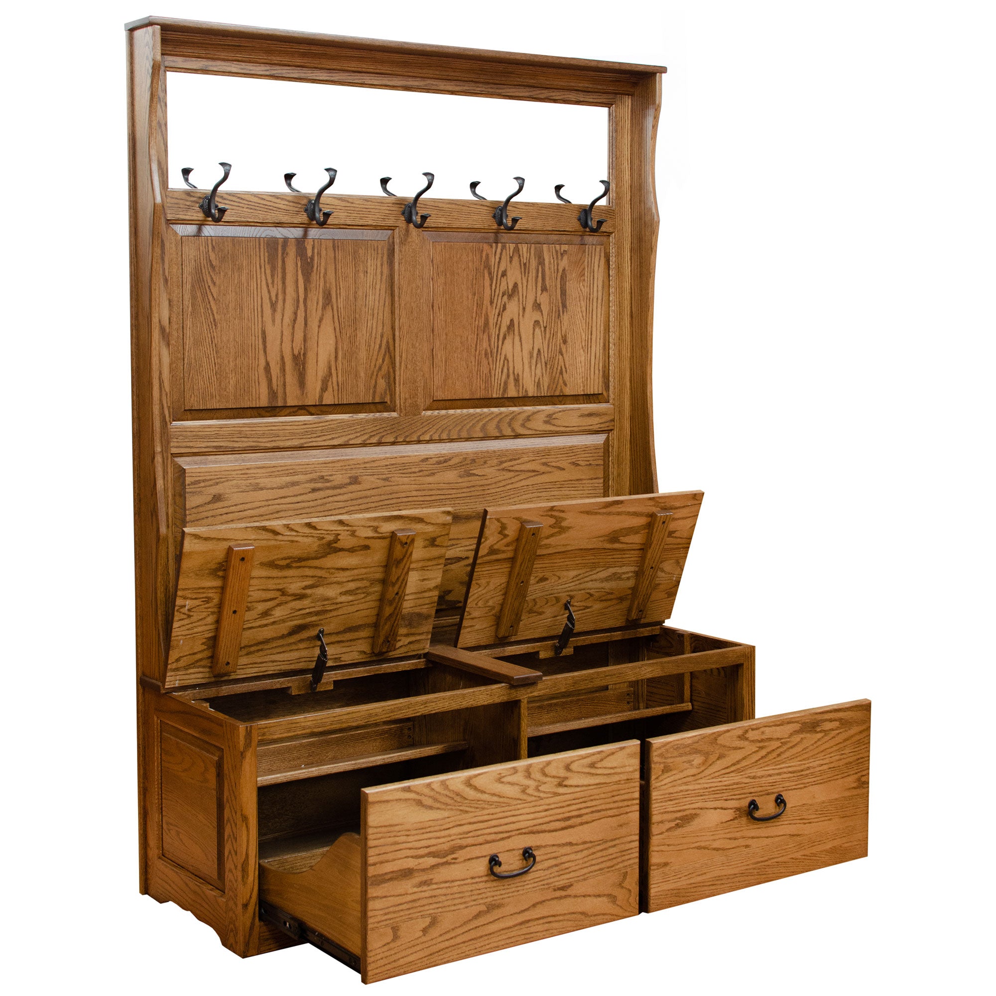 This unique Hall Tree proudly made in the United States. This well built storage bench has two individual compartments plus easy access full extension drawers with dovetail joints. Moreover, this can be used to store shoes, boots and other items for making it a well kept area. And the five sturdy hooks can be used to hang your coats, jacket and hats.