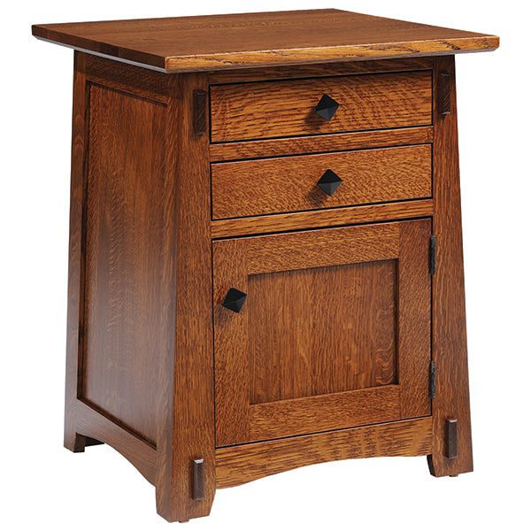 The Olde Shaker End Table is an ideal companion to the Olde Shaker Coffee Table, or any of the Shaker-style furniture from Barn Furniture Mart. This Shaker end table features the clean lines and easy style of a handmade Shaker furniture piece, along with excellent storage for books, remote controls, or coasters. This 22" wide by 22" deep by 28 1/4" high table has two top drawers and a single cabinet door with modern pulls designed to complement the quartersawn white oak (pictured). This American-made end table is available in variations of maple, cherry, and oak, and is finished to be water and stain resistant. As with all solid wood furniture from Barn Furniture Mart, this elegant end table is made in the USA and is guaranteed to be a wonderful addition to your living space!