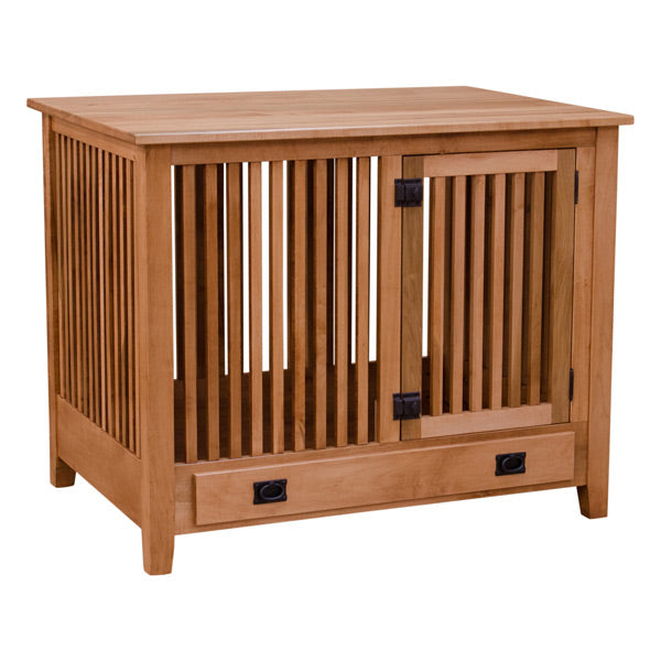 This kettle features a door with lock and a fake drawer bottom. It?s the best alternative way to keep the dog inside the kettle and still be near its owner while entertaining guests or enjoying a quite R&R for yourself. What other features that this unit offer? This can be custom made to a different size, wood and stains.