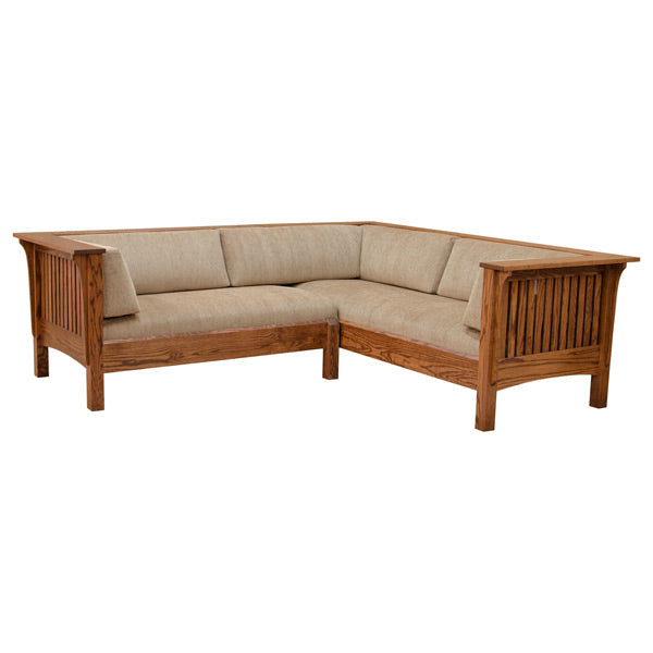 In addition, it features a wrap-around back wood panel that is exposed for easy arrangement in any room. This classic and timeless Amish Mission Sectional also features an incorporated webbing system that is both strong and flexible for great comfort and durability. This is a lovely addition to your home.