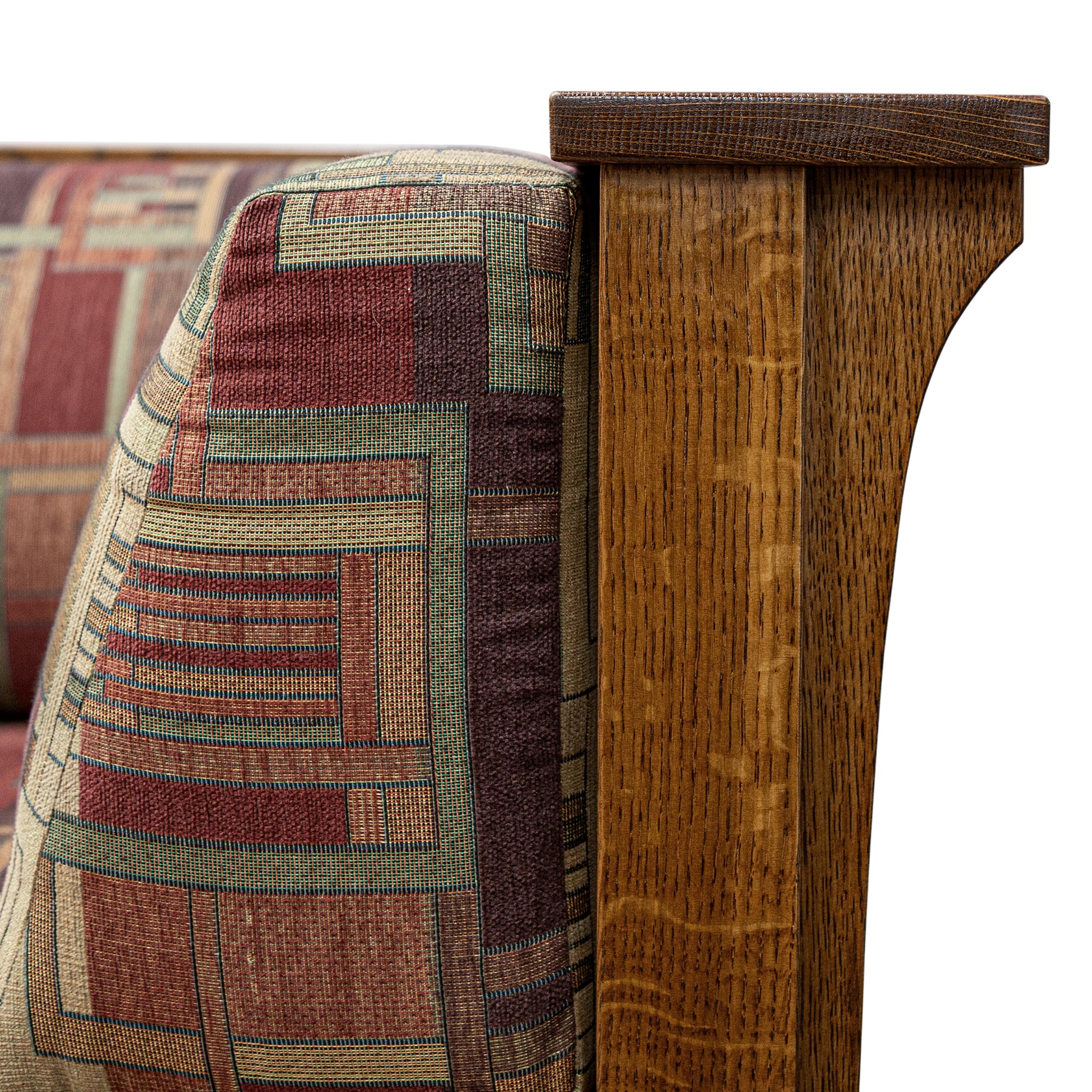 This elegant Mission Prairie Sofa w/ Fabric is constructed skillfully by highly experienced Amish Craftsmen and is built from hand selected solid Quarter Sawn White Oak (shown). This Mission Prairie Sofa remains true to the Arts & Crafts movement at the turn of the last 20th century inspired by the works of Frank Lloyd Wright. You can take pride in owning furniture built to the highest standards and with the strictest attention to detail.