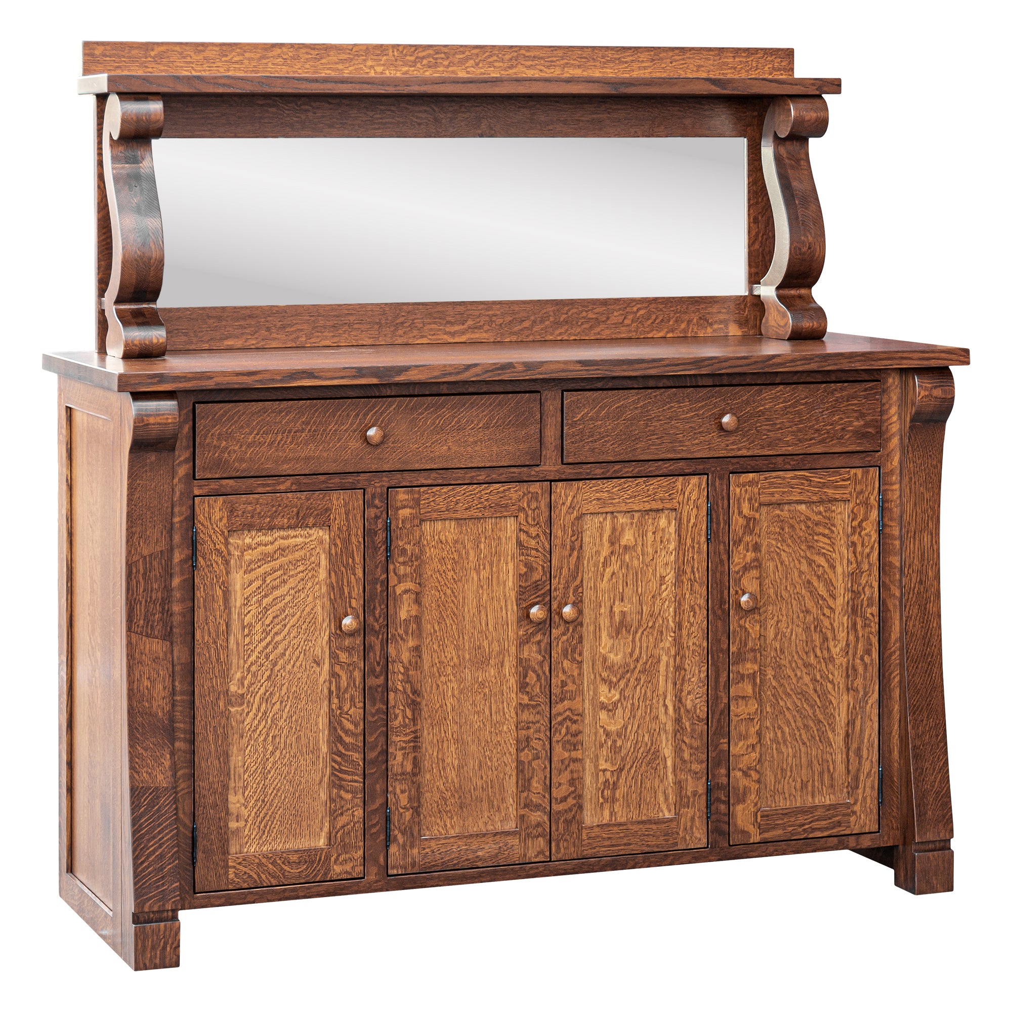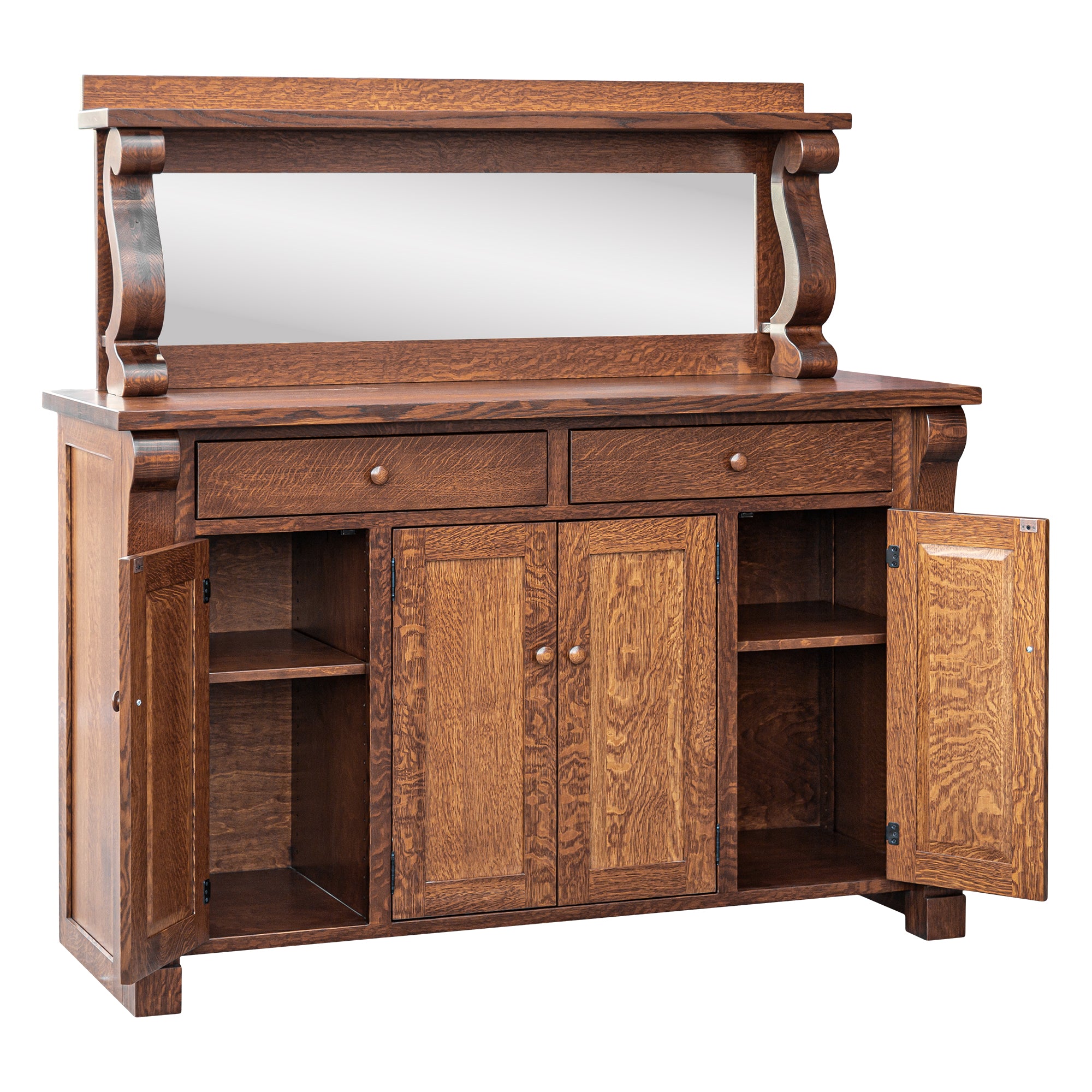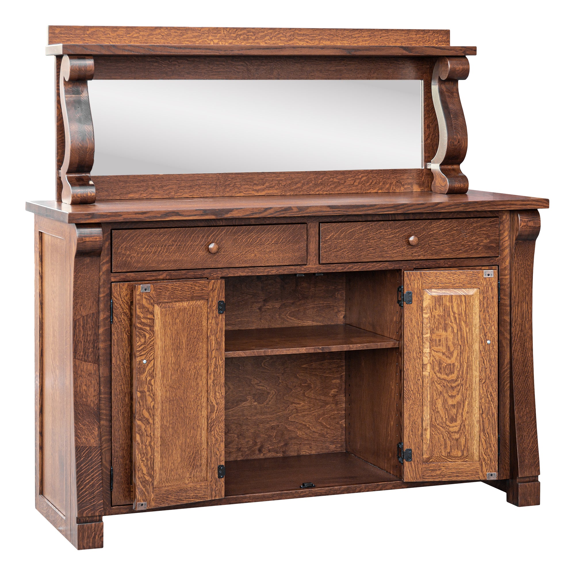 This Roycroft Style Server W/Mirror boasts an unparalleled level of craftsmanship in handmade furniture. Skillfully constructed by highly experienced Amish craftsmen using solid red oak (shown), you can take pride in owning furniture built to the highest standards with the strictest attention to detail. (THIS IS NOT A STOCK ITEM, BUT CAN BE MADE FOR YOU IN ANY SIZE?).