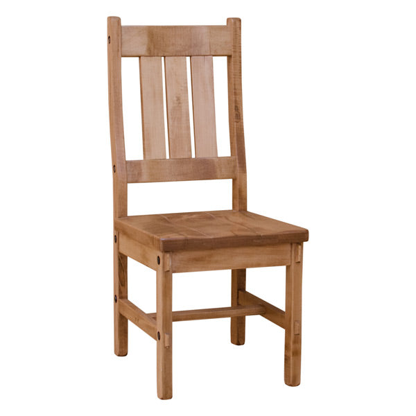 Another great feature of this chair, it is proudly made in the US. It also does not have any particle board or veneer use in this unit. It is constructed in a solid Rustic Wormy Maple wood that shows off its unique grain pattern and look.
