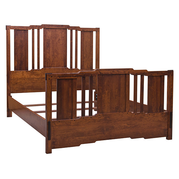 This beautiful and unique San Marino Queen Bed is a hallmark of the Greene & Greene contributions to the Mission Furniture and The Arts & Crafts furniture Movement. As shown, this is made out of hand selected cherry wood.