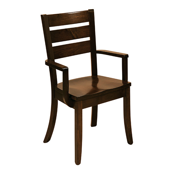 This American Made Contemporary/Transitional Savannah Arm chair is a classic. This wood seat or upholstered Ladder back chair has the simplest of lines and simple details. This series is built to contract specification which means extremely sturdy restaurant quality. Available in Side chair, armchair and bar stools in all heights swivel and non swivel. Note the pull down for wood choices including Red Oak, Quarter sawn White Oak, Maple and American black Walnut. Additionally, choose your color of finish. We offer almost unlimited choices of wood, color or upholstery