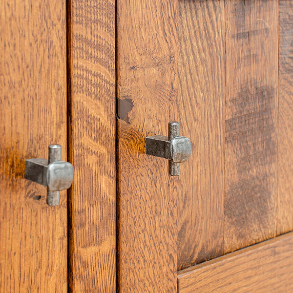 Our Settler?s Rustic Barn floor design can be recreated in any item we build. Shown here is a TV console 60? wide and 30? high) and is shown in Character quarter Sawn White Oak and is also available in Plain Cut Oak, Cherry Wood. Additionally any other North American Hard Wood is available including Black Walnut, Maple, and Elm. Color Choices are unlimited. Custom Sizes are always available.