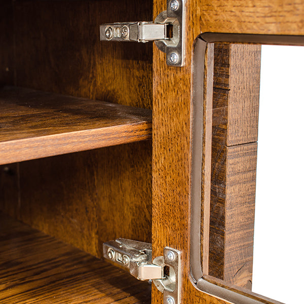Our Settler's Rustic Barn floor design can be recreated in any item we build. Shown here is a TV console 40" wide and 30" high) and is shown in Character quarter Sawn White Oak and is also available in Plain Cut Oak, Cherry Wood. Additionally any other North American Hard Wood is available including Black Walnut, Maple, and Elm. Color Choices are unlimited. Custom Sizes are always available.