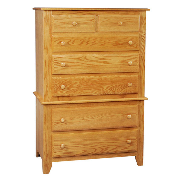 This classic Shaker 6-Drawer Chest on Chest displays a simple elegance and design that has stood the test of time. Constructed by skilled Amish craftsmen with solid Plain Cut Oak (shown), you can take pride in owning furniture built to the highest standards with the strictest attention to detail and unparalleled craftsmanship.