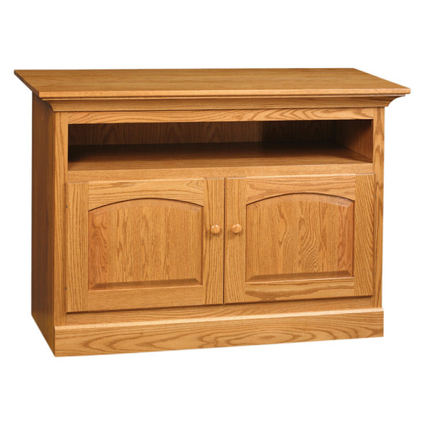This small Shaker light TV stand is handmade by skilled craftsmen in the Heartland of America. This beautiful TV stand is made out of solid Red Oak and constructed in an old world craftsmanship that?s rarely found in today?s furniture.