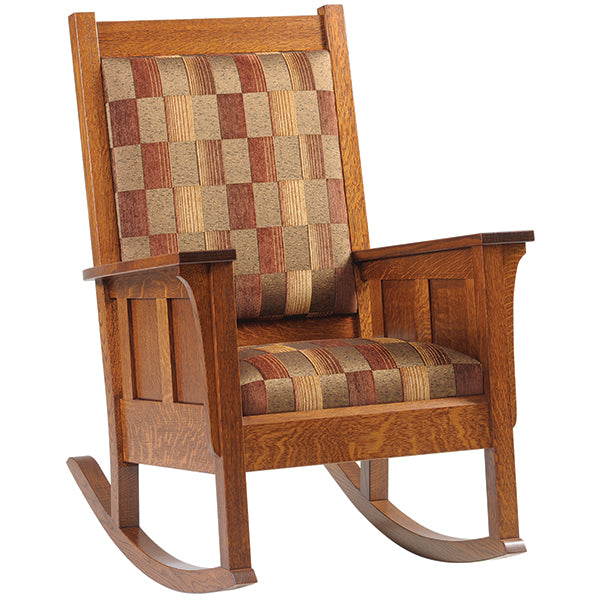 The Shaker Rocker is part of an entire line of Shaker furniture from Barn Furniture, including chairs, living room tables, cabinets and more! This beautiful, solid wood furniture piece features all the style expected from a shaker piece, combined with comfortable cushions with your choice of fabric to match any décor. Also available in several wood options, including oak, cherry, or maple, this Shaker rocker will make a fantastic addition to a den, living room, or bedroom. Measuring 29" wide by 36" deep by 41 3/4" high, this lovely Shaker chair fits well into any space. All Barn Furniture Amish-made pieces are made in the USA, crafted to be stain and water resistant, and is guaranteed to add value to your home.