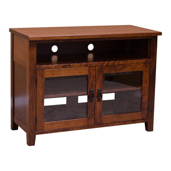 This beautiful Shaker Cherry TV stand is simple and yet elegant. It display simplicity and durability with the use of solid cherry wood that does not contain any particle board or veneer. You have enough room for your wires and plugs from the back slots.