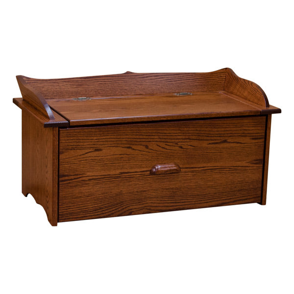 Another great item we added in our collection to compliment the wood d?cor theme of your lovely home. It is strongly built that you can even sit down on this unit. Nowadays most of the shoe storage chest is made out of particle board and made overseas. We are proud to say that this is made here by highly skilled craftsman using solid Red Oak wood.