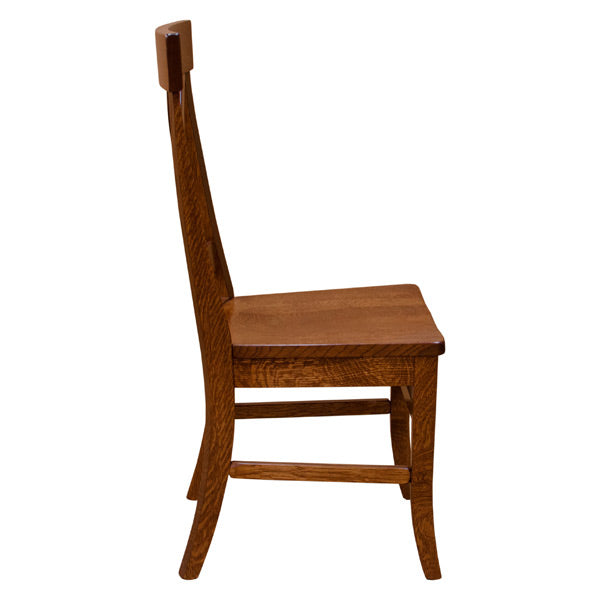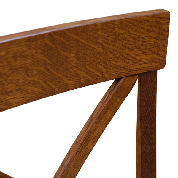 This Single "X" Back Side Chair is an elegant dining chair; handmade in the Heartland of America high quality wood(shown). It is sturdily built by experience craftsman with passion and dedication on furniture making. In addition, it is beautifully finish in a warm OCS 113 stain. This is available in different woods and stain.
