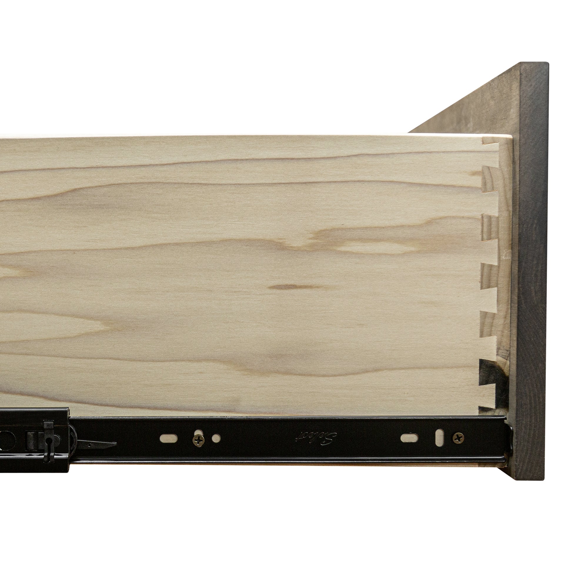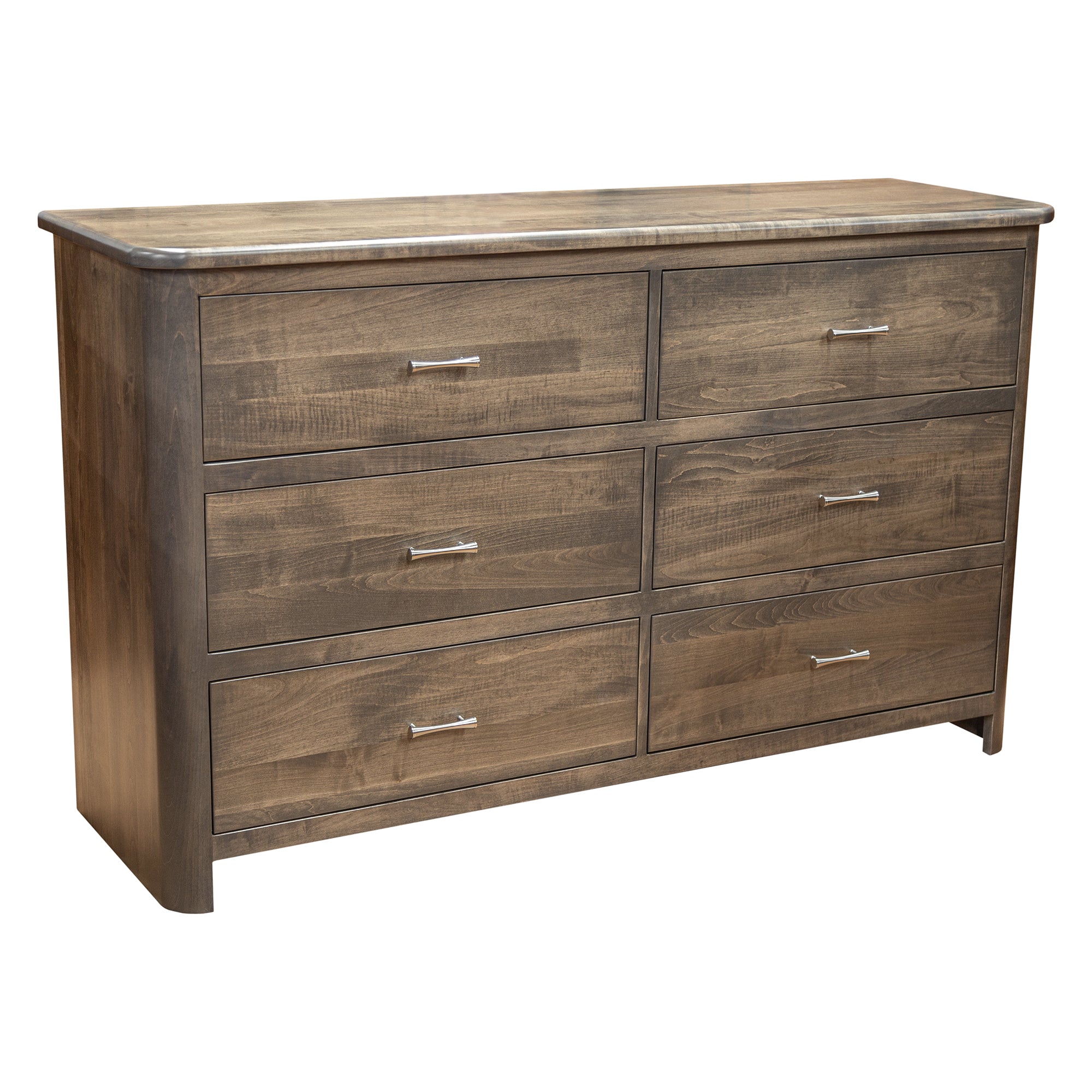 This Amish 6-Drawer Chest piece is handcrafted in the Heartland of America. Constructed from hand-selected solid oak and finished in a Brown Maple Smoke Gray, this unit features five solid oak drawers made with traditional English dovetail joints.