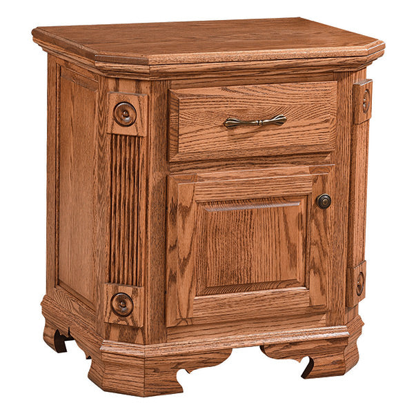 This Scarbrough Bedroom Collection is Classic Amish American Made in Classic Colonial Style. Drawers are English Dovetailed front and back and we use solid hardwood drawer boxes and cases throughout. Drawer suspension is Side Mount Full Extension ball bearing slides. Custom sizes and details are always available options as well as matching beds in all sizes with and without under drawers. We have it shown here in an OCS102 light finished Solid Plain Cut Oak. We have a variety of finishes and many wood species to choose from.