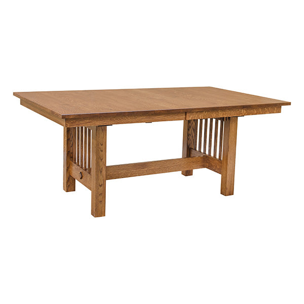 Our Standard Mission Trestle table is one of our standards for more than 35 years. 42x72 with 2 leaves or 4 leaves. Also available in any custom size, wood or color.