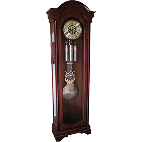 Our Amish Hand Made Clocks are priced in Solid Oak and are also available in your choice Solid Cherry or Solid Quarter Sawn White Oak and other hardwood options. See pull down to request shipping quote and details. Color Choices are almost unlimited. This piece is no cheap Veneer Import; this is a hand crafted and bench made solid American hardwood Clock Case with trouble free German movement. This piece contains no pressboard, particle Board or MDF.
