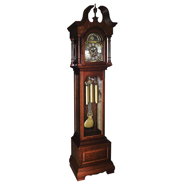 Our Amish Hand Made Clocks are priced in Solid Oak and are also available in your choice Solid Cherry or Solid Quarter Sawn White Oak and other hardwood options. See pull down to request shipping quote and details. Color Choices are almost unlimited. This piece is no cheap Veneer Import; this is a hand crafted and bench made solid American hardwood Clock Case with trouble free German movement. This piece contains no pressboard, particle Board or MDF.